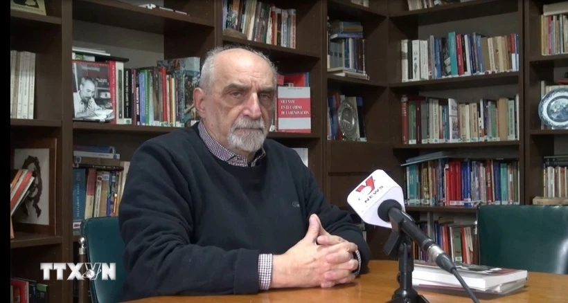 Quyền Tổng Bí thư Đảng Cộng sản Argentina, Jorge Kneyness, trả lời phỏng vấn phóng viên tại Buenos Aires về Chủ tịch Hồ Chí Minh (Ảnh: Diệu Hương/TTXVN)