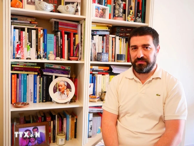 Nhà báo Gaston Fiorda, tác giả cuốn sách “Việt Nam, biên sử kháng chiến”. (Ảnh: Diệu Hương/TTXVN)