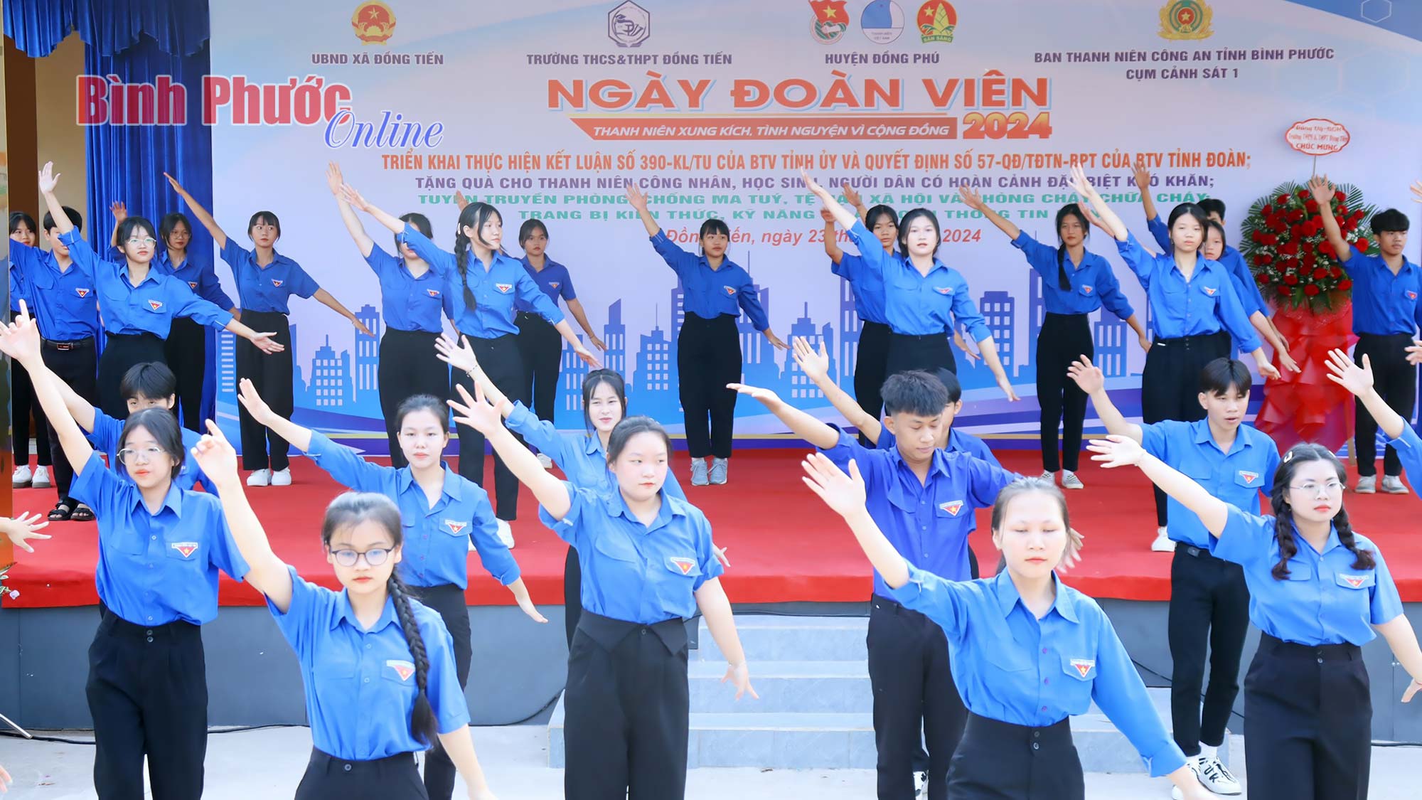 Học sinh trường THCS&THPT Đồng Tiến nhảy dân vũ bài “Thanh niên Việt Nam tiến bước” trong chương trình: Ngày đoàn viên” năm 2024